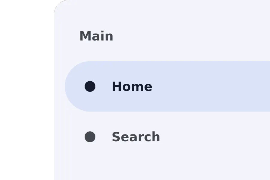 import { NavigationDrawer } from "material.slint";export component Example inherits Window { width: 400px; height: 300px; background: transparent; NavigationDrawer { width: 280px; height: parent.height; groups: [ { title: "Main", items: [ { icon: @image-url("icons/home.svg"), text: "Home" }, { icon: @image-url("icons/search.svg"), text: "Search" } ] } ]; }}