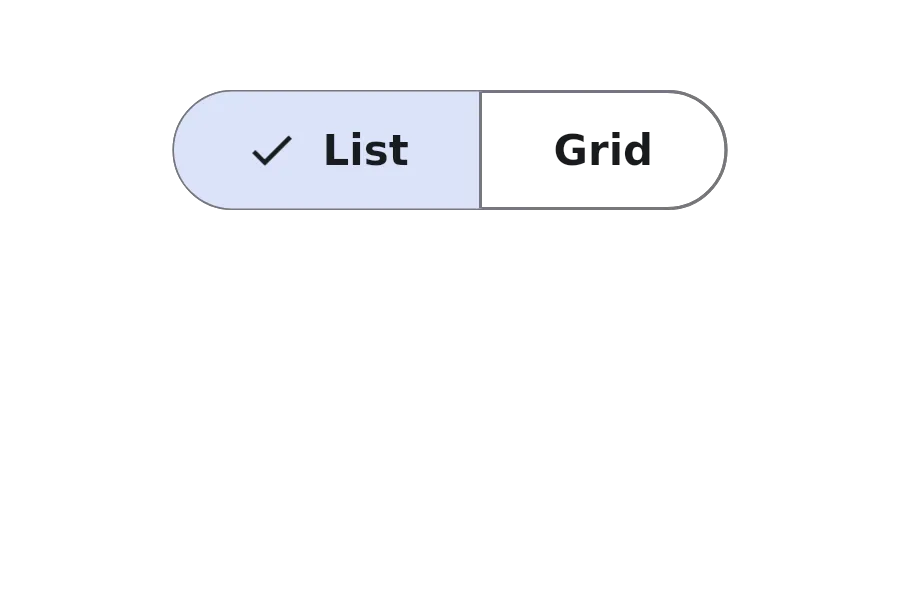 import { SegmentedButton } from "material.slint";export component Example inherits Window { width: 300px; height: 100px; background: transparent; SegmentedButton { model: [ { icon: @image-url("icons/list.svg"), text: "List" }, { icon: @image-url("icons/grid.svg"), text: "Grid" } ]; current-item: 0; }}